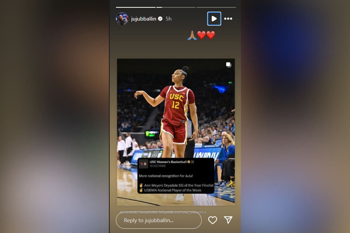 The USC guard added a folded hand emoji, followed by two heart emojis on her story to show her gratitude toward the recognition.