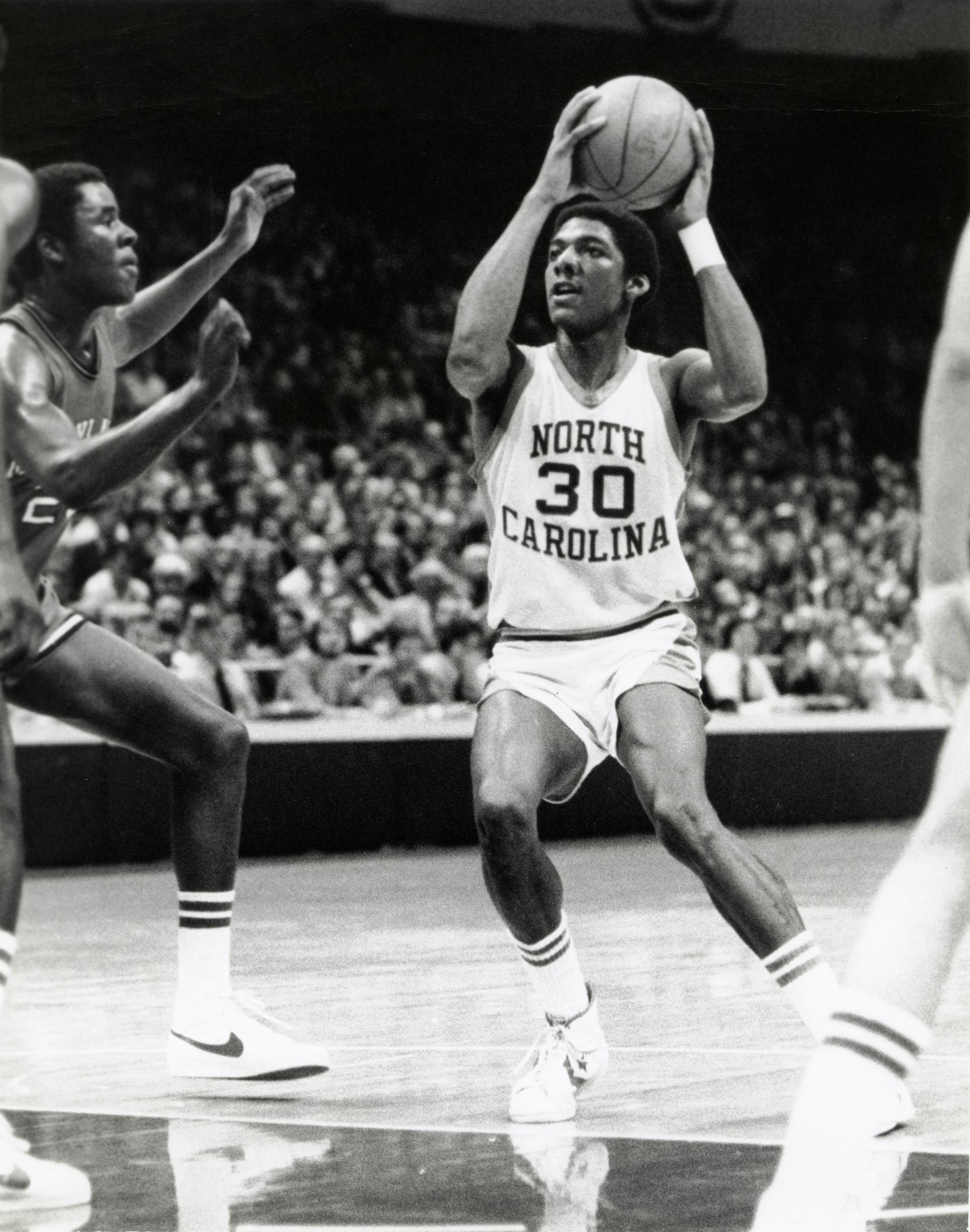 Across his four years at UNC, Al Wood averaged 16.0 points, 5.0 rebounds, 1.4 assists and 1.0 steals per game. He led the Tar Heels to the national title game in 1981, where they lost to Indiana.