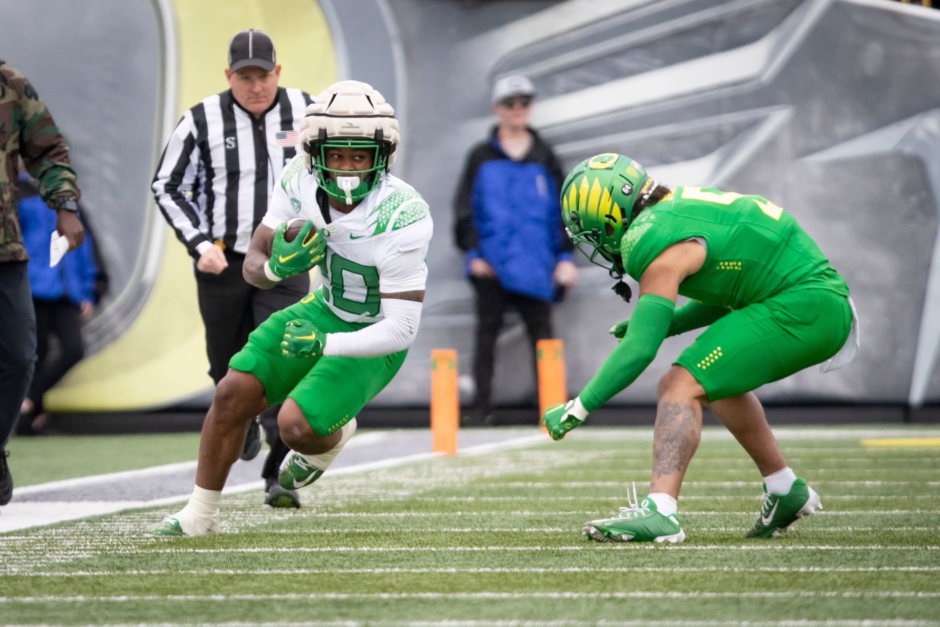 Jordan James will be in full control of the Oregon backfield during the 2024 college football season as he takes over for Bucky Irving. As a backup for the Ducks in 2023, James appeared in all 14 games and added 759 yards and was tied for most rushing touchdowns with 11. He also contributed in the passing game, catching 15 passes for 132 yards and one receiving touchdown.