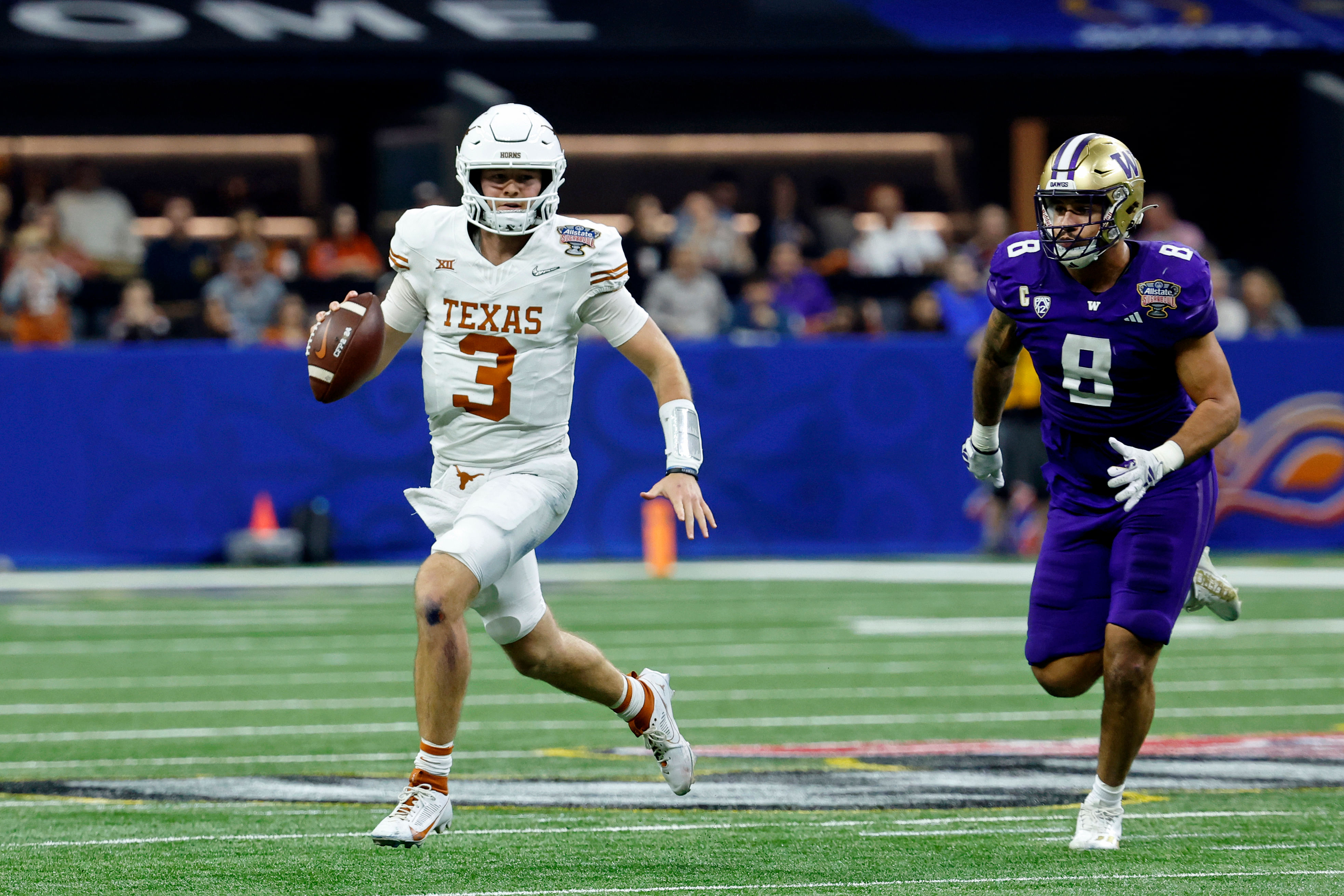Quinn Ewers will return to Texas for his third season and ranks as one of the highest quarterback prospects in the 2025 NFL Draft. Ewers had a 69.0% completion percentage last season while throwing for 3,479 yards.