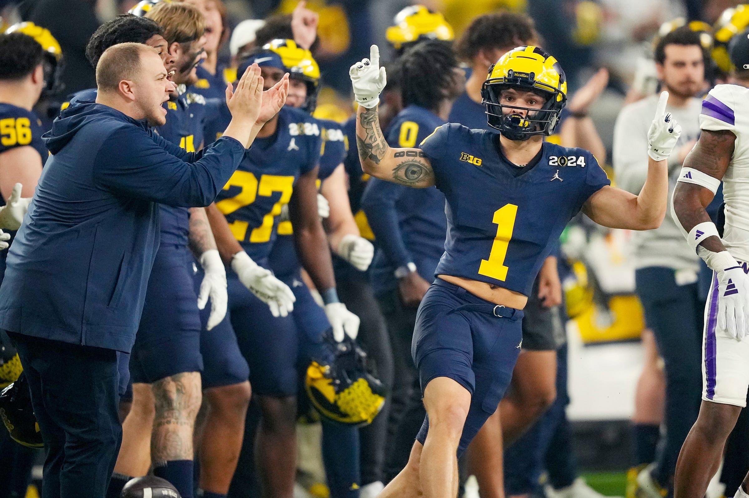A former receiver, the five-foot-10 Sainristil became the defensive ballhawks of the Wolverine attack. Sainristil had six interceptions in 2023, including pick-sixes against Rutgers and Michigan State. He also had a pick and 81 yard return in the national title game against Washington.