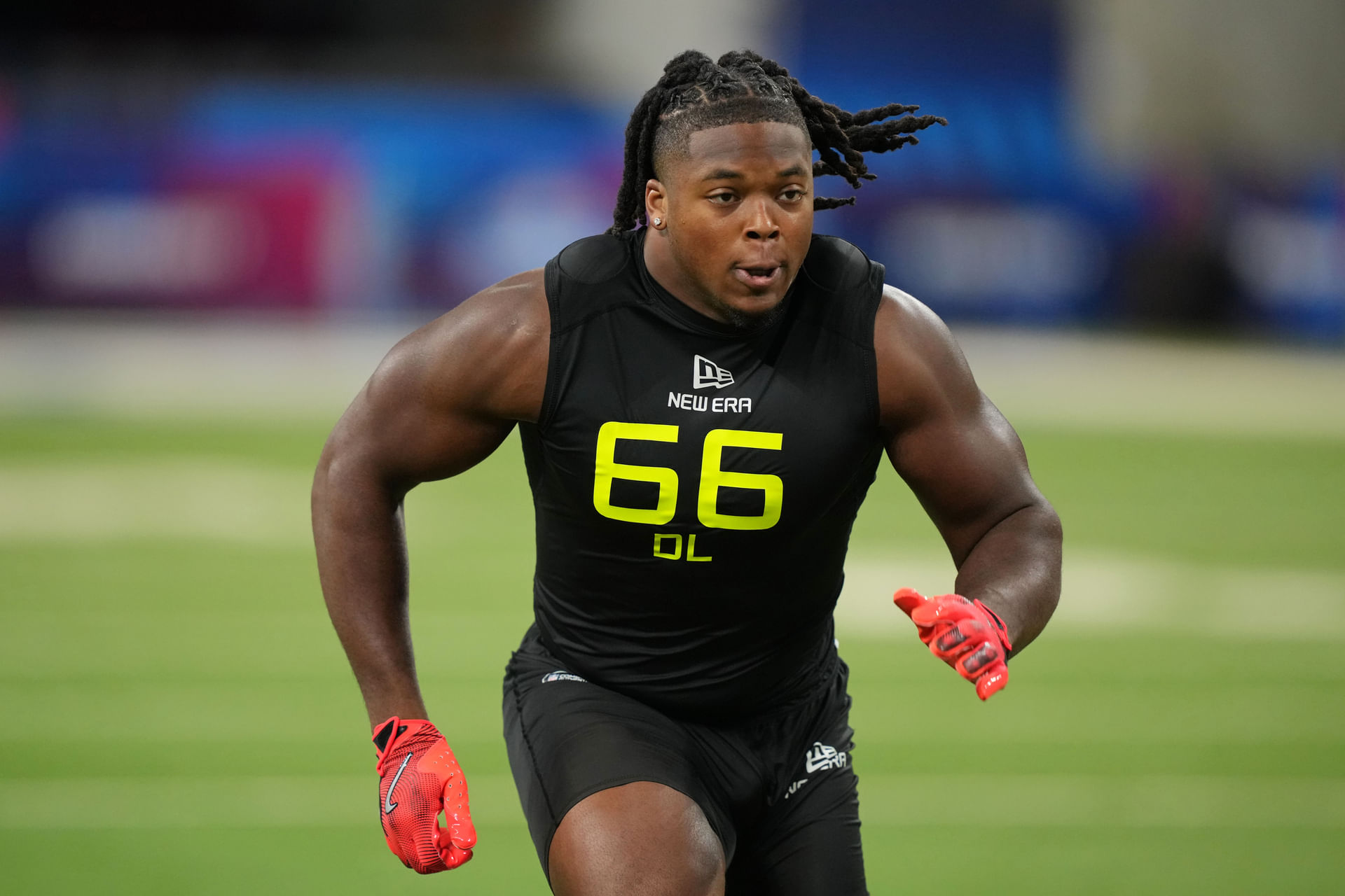 Jones measured 6-foot-4 and 320 pounds Wednesday, completed 29 reps on the bench press, and hit 31 inches in the vertical jump and 9-foot-5 in the broad jump.