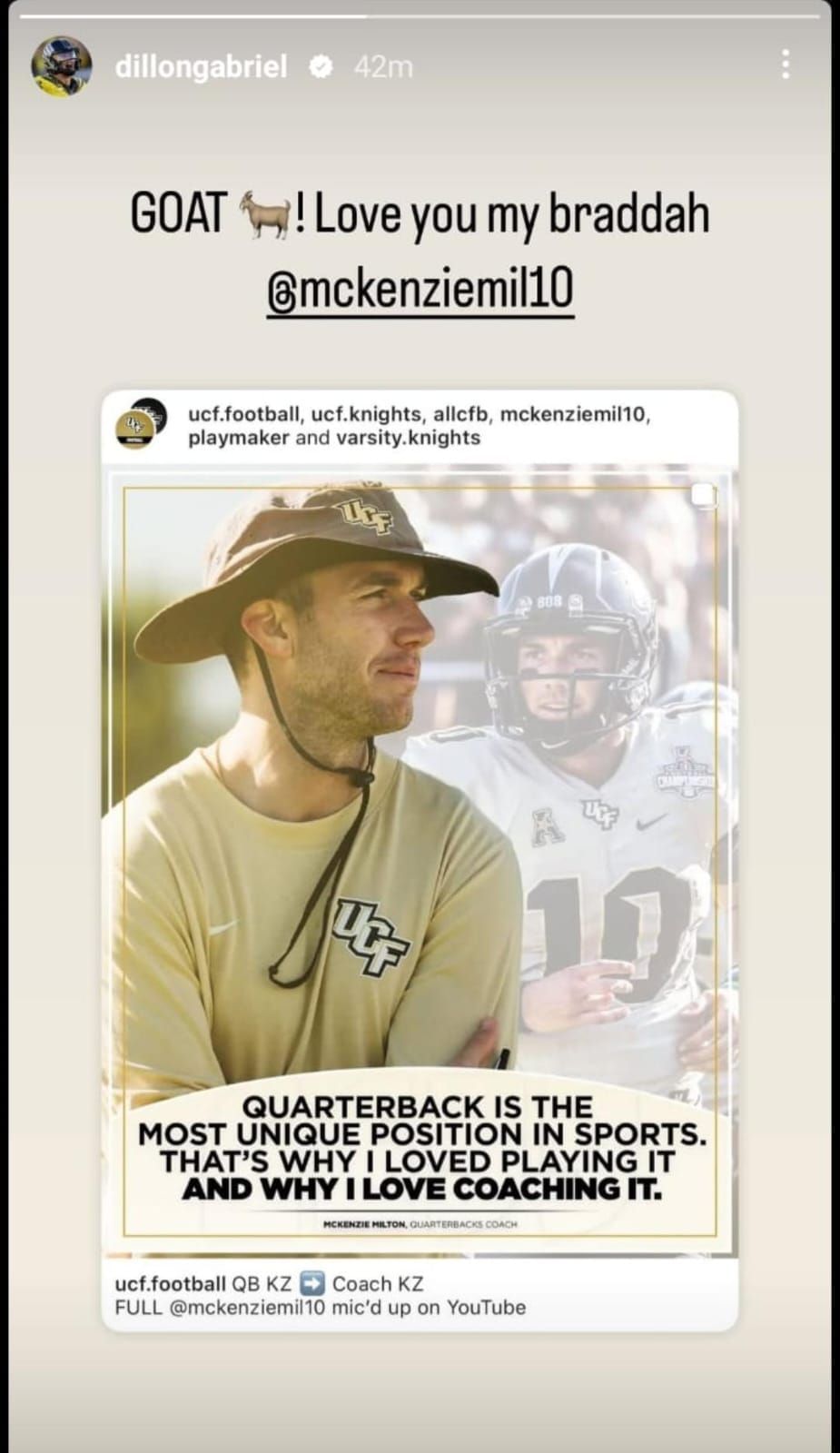 Dillon Gabriel shared the post on his IG story and shared some words of appreciation for the former quarterback: