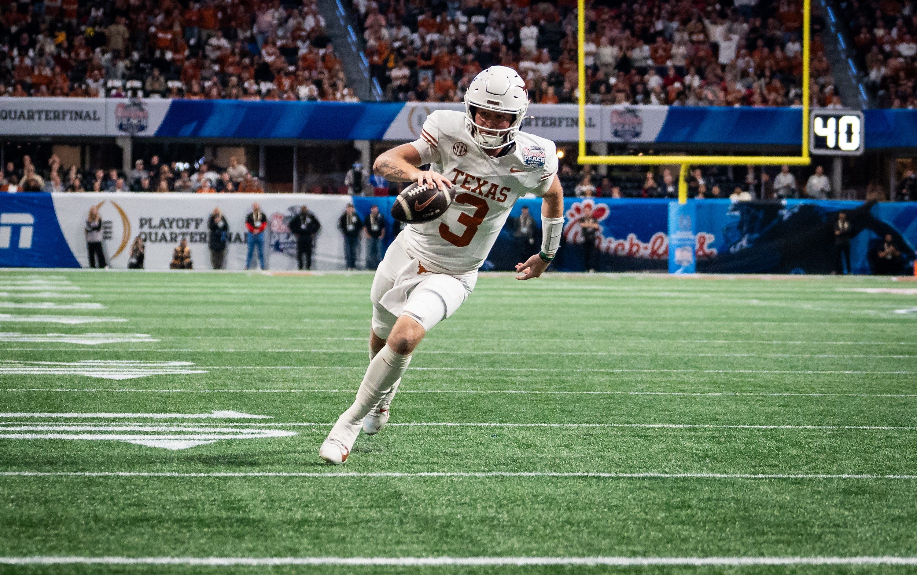 Quinn Ewers will lead the offense for Texas in the College Football Playoff semifinal against Ohio State on Jan. 10. The Longhorns quarterback led his team to a 39-31 win over Arizona State on Wednesday to guide Texas into the next round of the Playoff.