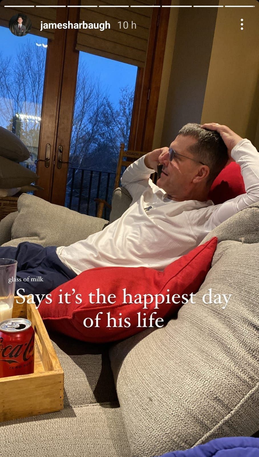 Just a day after winning the rivalry game against Ohio State, the reaction of Michigan head coach Jim Harbaugh has surfaced. His son, James Harbaugh, took to social media and uploaded a snap of him sitting on the couch. He also revealed what Harbaugh said about the win.