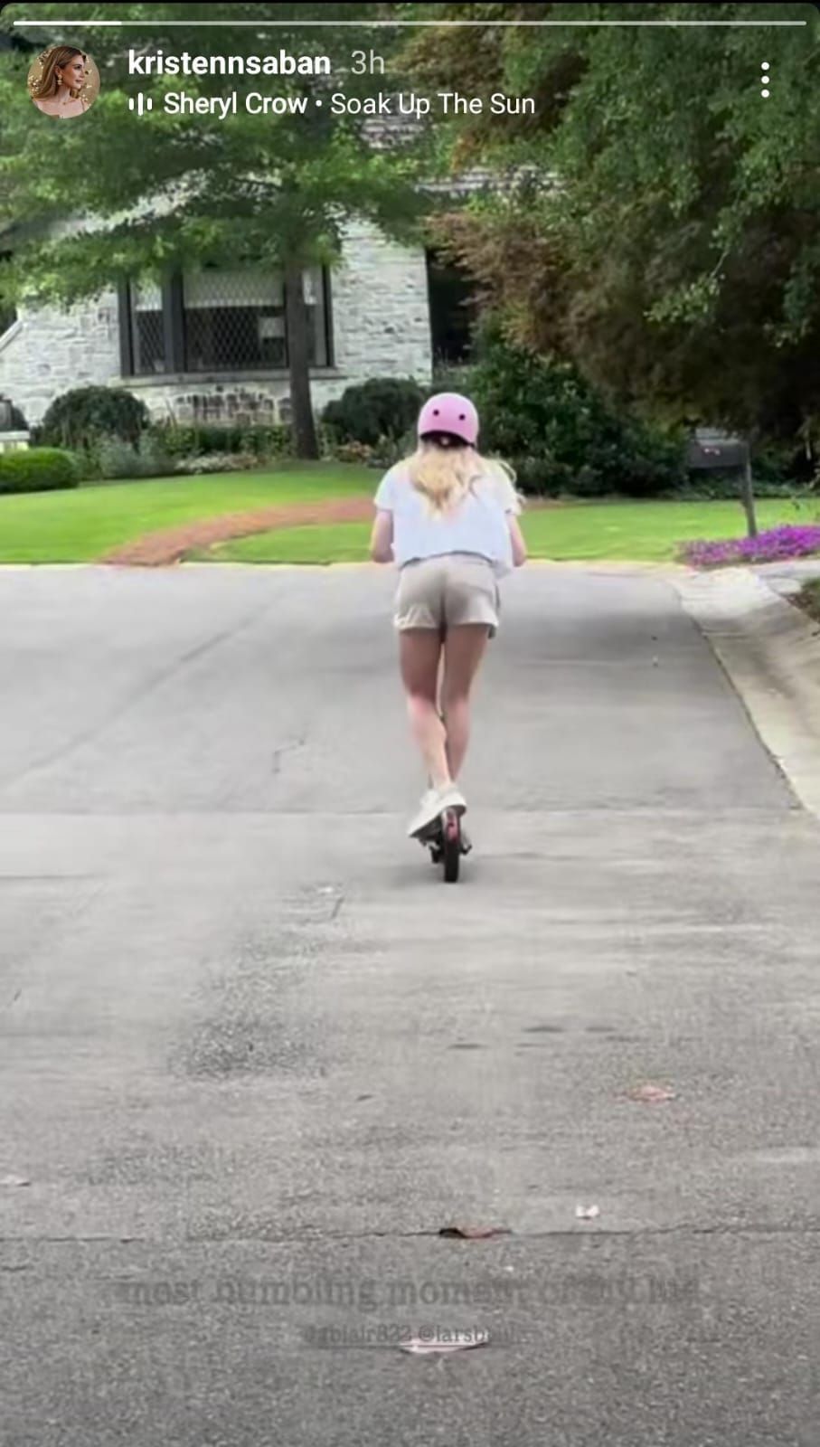 On Saturday, Saban's daughter shared a post on Instagram story about learning to ride an electric scooter on an empty street. She's wearing a pink helmet paired with a white outfit as she cruised down the street.