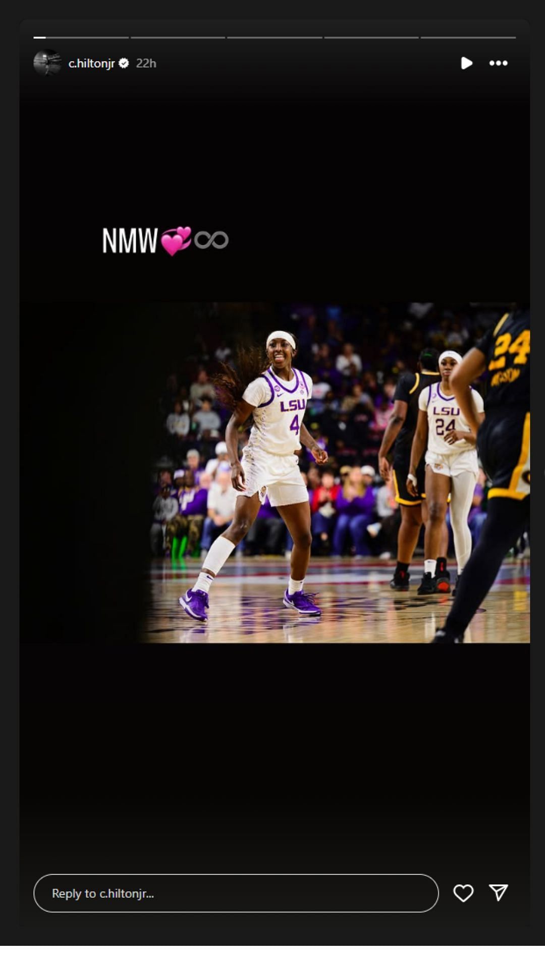 Chris Hilton also added another Instagram story—a photo of the scoreboard showing Jonson's impressive stat line of 22 points, five rebounds and two assists.