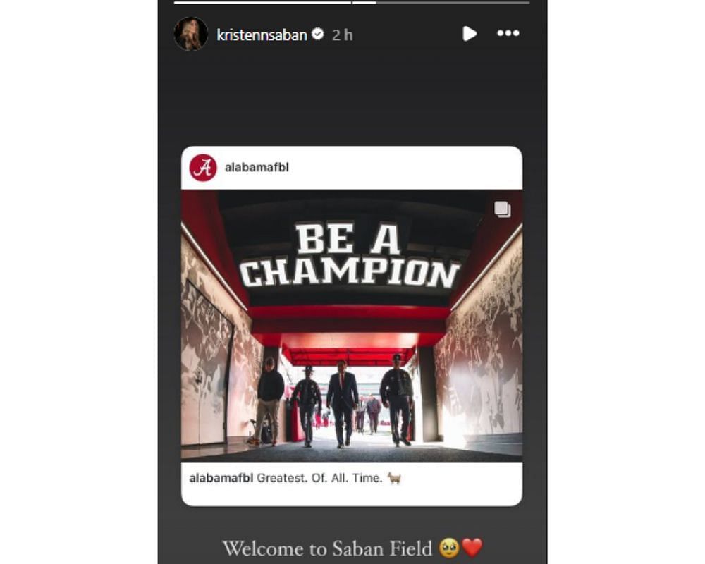 Whether or not Saban coaches the Crimson Tide, Kristen is a hardcore supporter of Alabama football. Saban reshared a post by @alabamaftbl on her Instagram story before Alabama's Week 2 game against the South Florida Bulls at the Bryant Denny Stadium in Tuscaloosa. Kristen captioned her post:
