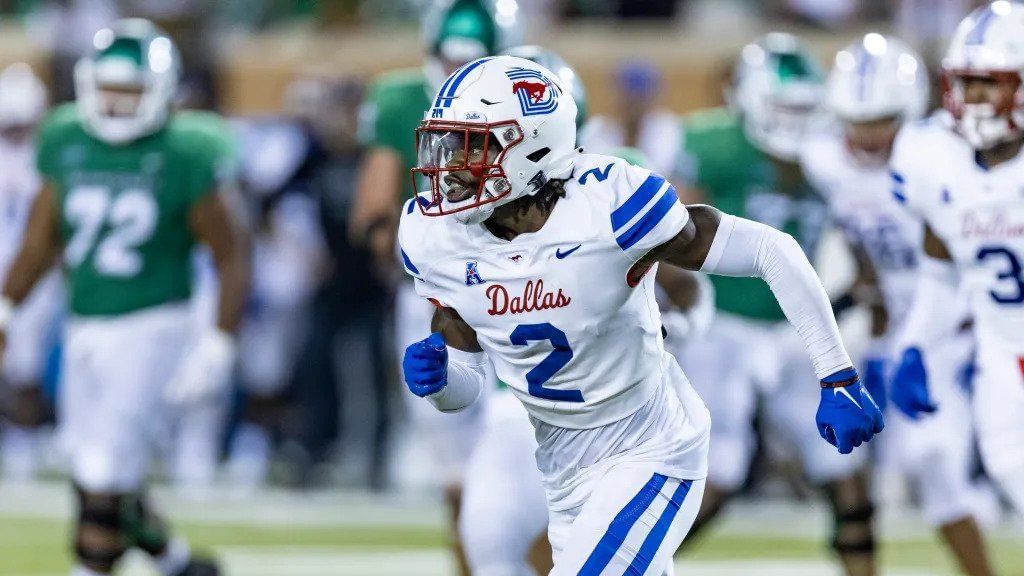 A homage to the 1970s aesthetic, this uniform was part of an attempt to rebrand the Mustangs as the Dallas college football team. This white uniform with blue lines was flawless.