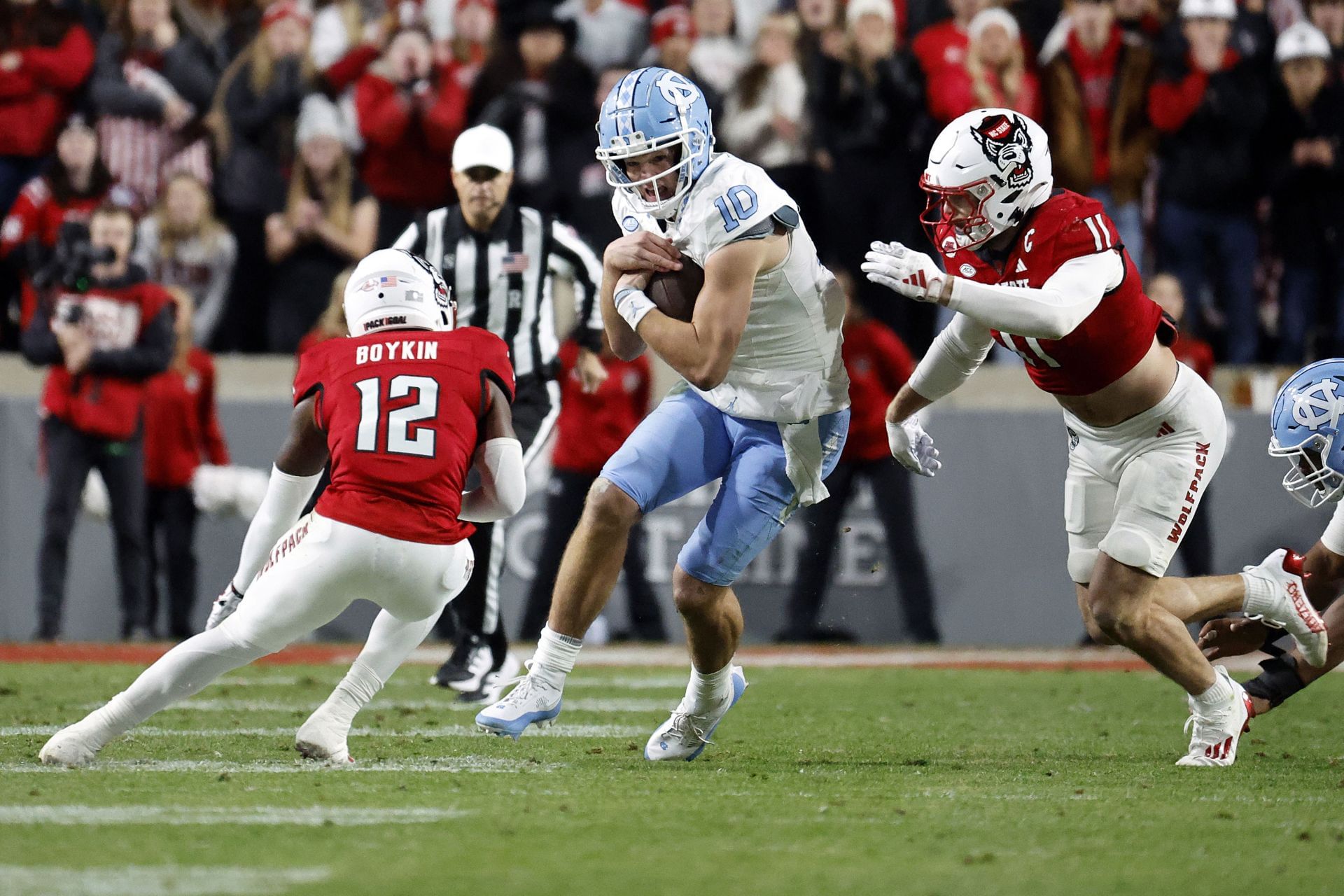 North Carolina quarterback Drake Maye has the last opportunity to represent his home team at Duke's Mayo Bowl on Wednesday, Dec. 27, against the West Virginia Mountaineers. Both teams have failed to qualify for the College Football Playoff and will play the bowl game to finish the year.