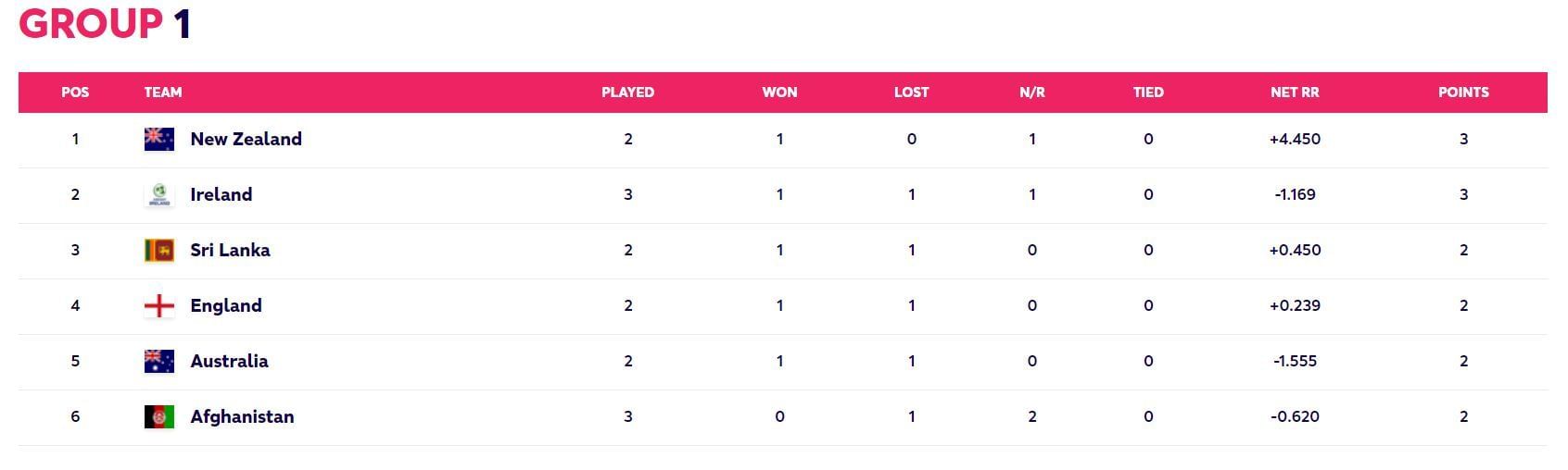 Ireland now have three points to their name as they move up the ladder. They are now placed second and sit below New Zealand, who also have three points to their name. The Kiwis are ahead due to a better net run-rate.