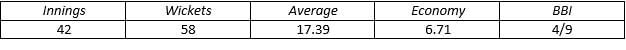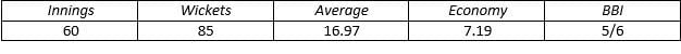 In T20I cricket too, Mendis became quickest to 50 wickets by breaking Gul's record in ten fewer matches. In addition to that, the Sri Lankan has a six-wicket haul to his name, which no other player has been able to achieve thus far.