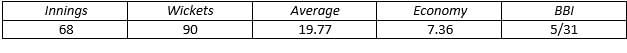 The slingy round-arm action with an ability to generate bounce and reverse swing has been fundamental to his success even on batting-friendly wickets in this format.
