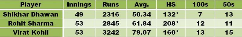 Here is the individual performance of Indian top-order since 2015 World Cup: