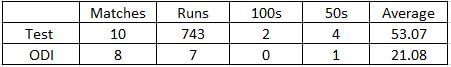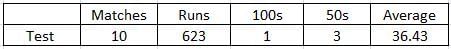 In November 2016, he made his debut in a test match against South Africa at Adelaide and scored a fifty on his debut and a hundred in his second test. Handscomb has scored 743 runs in 10 test matches for Australia, which includes 2 hundred and 4 fifties.