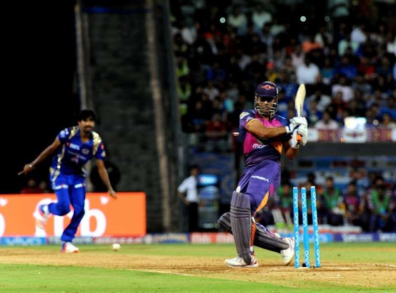 While Ben Stokes has not been able to repay the investment made in him by Pune with his bat, Dhoni was expected to continue his form from the last game in which he won the Man of the Match award for his 61* off 37 balls and won Pune the game against Hyderabad. Unfortunately, he fell to a beauty by Bumrah.