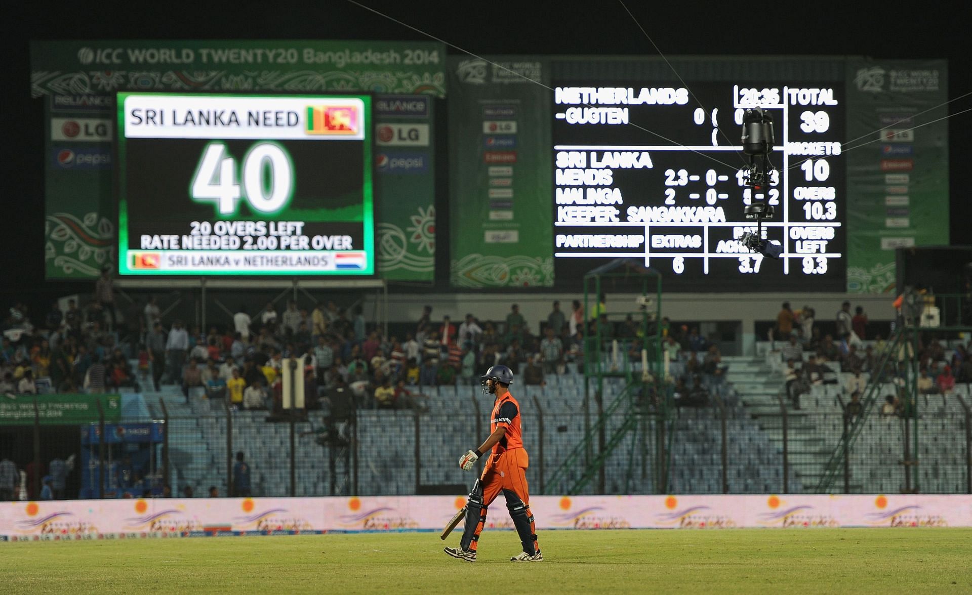 The Netherlands could last for only 10.3 overs as just four bowlers were used. Angelo Mathews picked up three wickets, while Nuwan Kulasekara picked up one and Lasith Malinga chipped in with a couple.