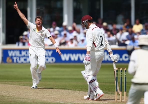 In the warm-up game against Somerset, Australian seamers Mitchell Starc and James Pattinson extracted prodigious swing with the second new ball and knocked over six wickets for no runs in 29 deliveries.