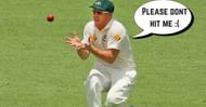 Fielding lesson 101: Always position your hands in such a way that even if you miss the ball, it does not fall on your head.