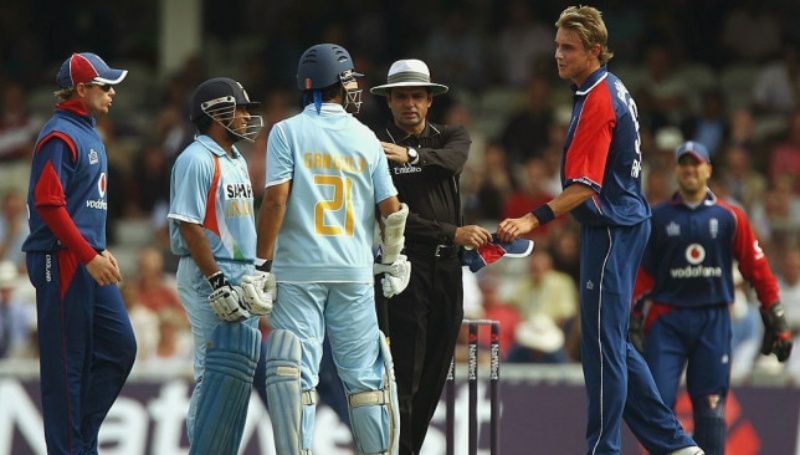 As the partnership was building, England’s bowlers grew increasingly frustrated. Pacer Stuart Broad attempted to unsettle Ganguly by nudging him to play a stroke. Things got a bit heated between the two and the umpires had to step in to calm things down.