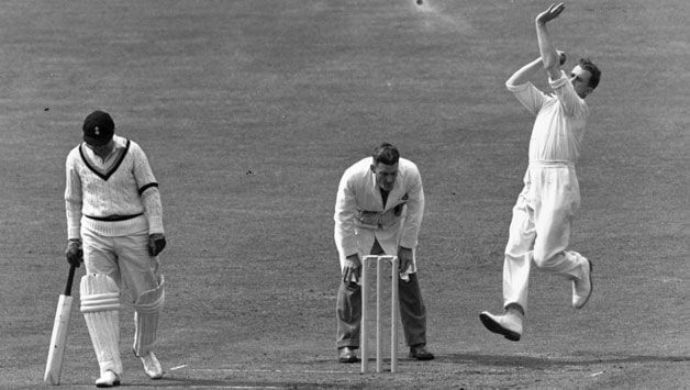 Jim Laker became the first bowler to take all ten wickets in a Test innings when the English spinner claimed 10-53 in the second innings of the third Test of the 1956 Ashes series against Australia in Manchester.