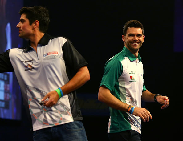 England’s Test Captain Alastair cook and fast bowler James Anderson competed in a game of darts in the World Darts Championship at the Alexandara Palace. Both players are huge fans of the game and always follow the game whenever they are able to do so.