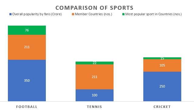 Cricket trails Football not only in popularity but also in finances. While ICC projects an average revenue for this rights cycle of USD 2.5 Billion over a 9-year period starting from 2015 to 2023, FIFA targets a revenue figure of approximately double that of ICC in less than half the time (USD 5.5 Billion in 2015-2018).