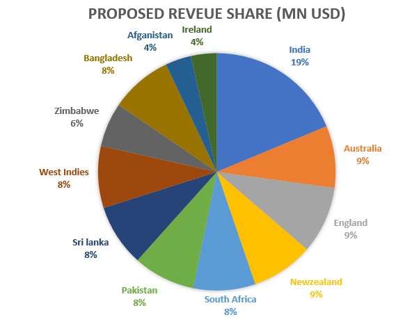 Below is a snapshot of ICC’s new financial model depicting how the revenue is going to be shared among the major cricket playing nations. As seen, India continues to be the largest beneficiary followed by Australia, England and others.