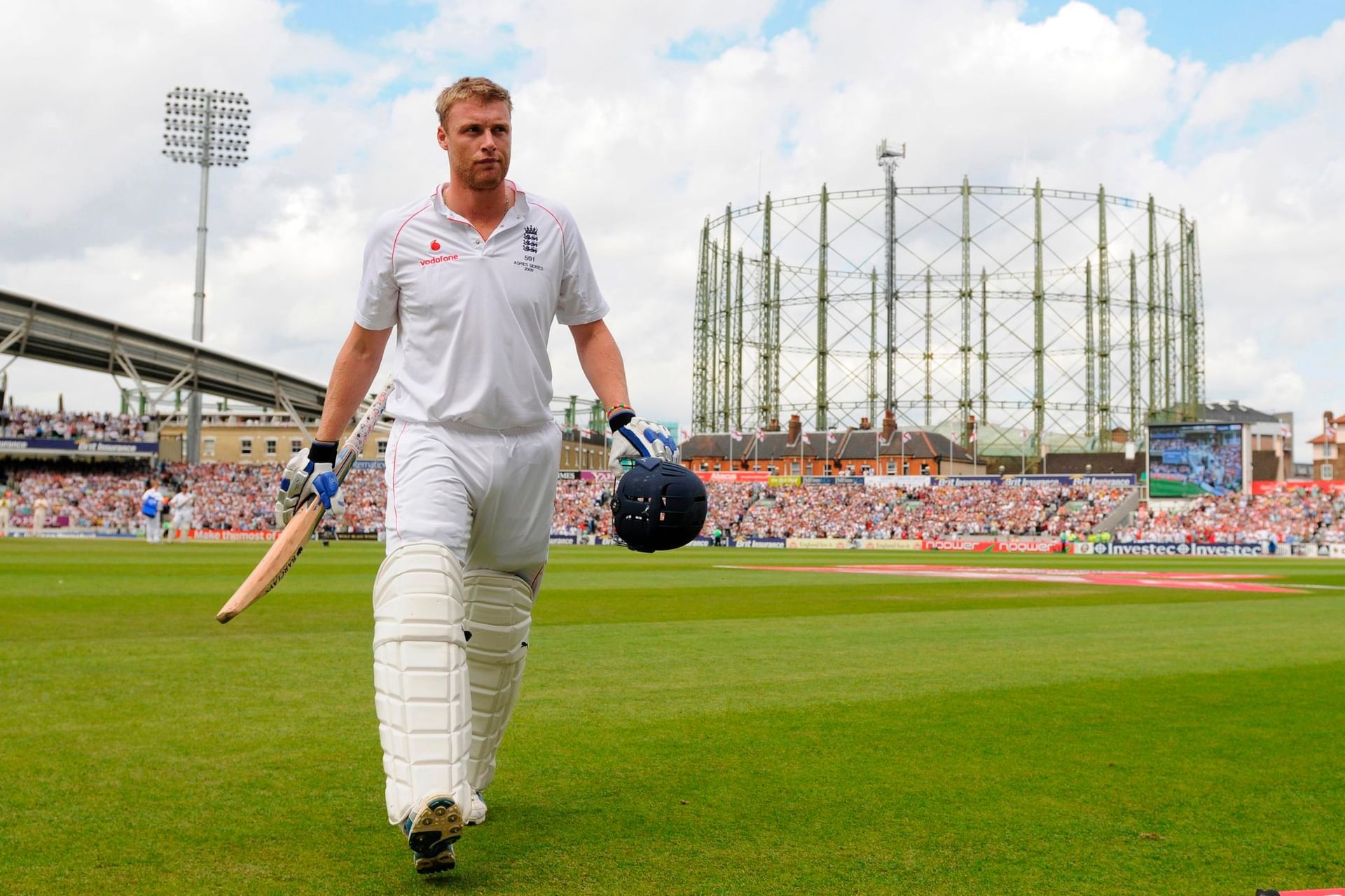 England needed a further 139 runs to win the match, with 17 overs still remaining, when off-spinner Saqlain Mushtaq struck twice in the same over to remove both Hick and Flintoff. Flintoff was dismissed for exactly 50 off 51 balls and hit 2 fours and 4 sixes in his innings. England fell short of their target by 90 runs. Freddie will always be remembered for his stellar role in the 2005 Ashes triumph at home where he was named the man of the series. He retired from Test Cricket in 2009 after regaining the Ashes and from all forms in 2010.
