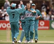 He was a part of 3 consecutive World Cups (1992 to start with). During that tournament, he joined Chris Harris and Willy Watson, and became a part of the ‘dibbly-dobbly-wibbly-wobbly’ trio. This trio took Kiwis to their first taste of the World Cup Semis. And again during the 1999 edition, they again reached the top four, where he conceded just 3.46 in an over supporting the tournament’s highest wicket taker Geoff Allot. Larsen’s overall World Cup tally stands at 18 wickets at 33.27 with the best of 3/16, including an incredible 12 maiden overs.