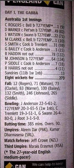 It also printed a scorecard, but Broad was referred to as ‘T27YEMP’, short for ‘The 27-Year-Old English Medium-Pacer’
