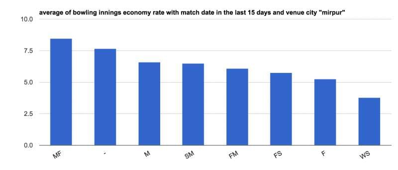 After sharing these stats with each other, we concluded that we started with right premise. The Mirpur pitch is indeed supporting faster bowlers. The majority of wickets taken by finger spinners are coming from just two matches (Hong Kong vs Afghanistan and Oman vs UAE). With respect to economy rate, finger spinners might be helping pacers in the middle overs, but definitely, pacers are making their name even before the spinners are in action.