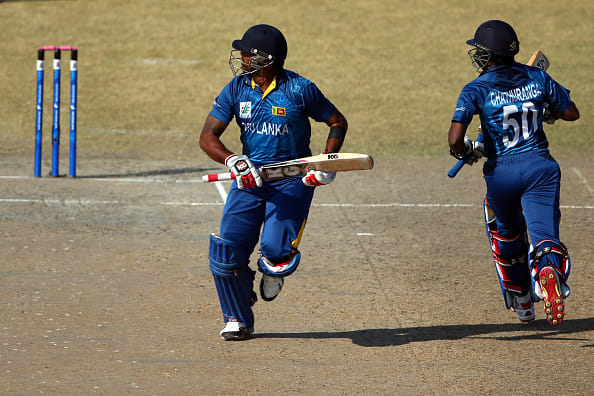 Dinesh Chandimal opened the innings together with Upul Tharanga but the pair could only add 7 runs for the first wicket as Upul Tharanga was out caught behind off the bowling of Nasim Baras. The Sri Lankan captain then joined Chandimal to build a counter attacking partnership that deposited the Afghan bowling to all parts of the ground. The pair added 72 runs for the second wicket before Chandimal top edged a slog to mid-off. Thirimanne, however persisted with his nonchalant hitting, scoring 57 off just 37 balls.