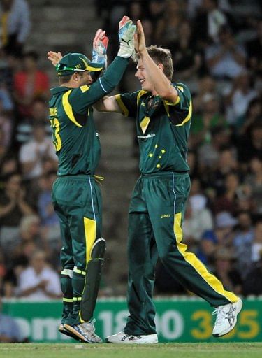 Faulkner bowled him for 86 off 96 balls to put the skids under the West Indians. He finished with two more wickets, clean-bowling spinner Sunil Narine (1) and skipper Sammy (8) to wrap up the Australian victory.