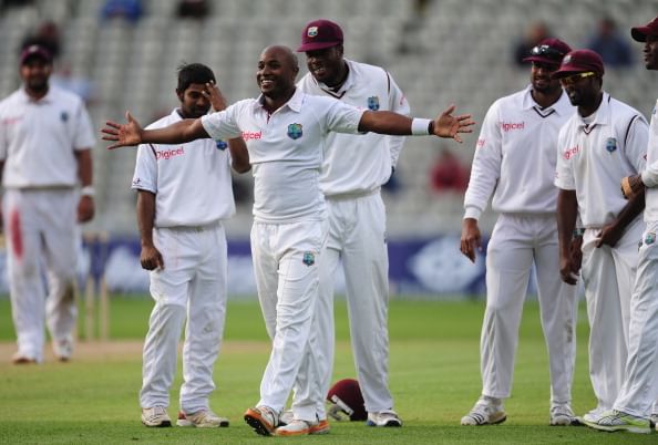 BIRMINGHAM, ENGLAND – JUNE 10: West Indies bowler Tino Best celebrates after bowling Jonathan Bairstow during day four of the 3rd Investec Test match between England and West Indies at Edgbaston on June 10, 2012 in Birmingham, England.