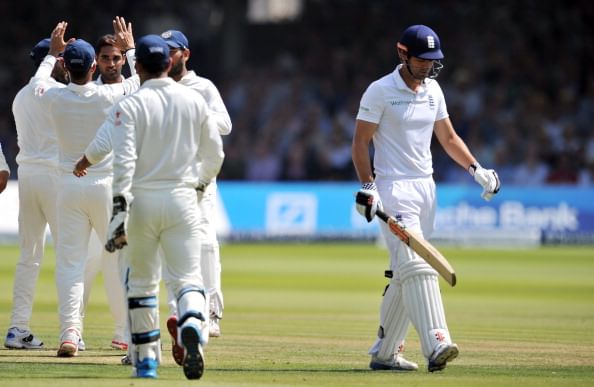 Cook's poor run with the bat continued as he managed just 10 runs before edging an accurate delivery from Bhuvneshwar that was well taken by Mahendra Singh Dhoni behind the stumps. It has been over a year since Cook passed the three-figure mark and has scored just 93 runs in his last six Test innings.
