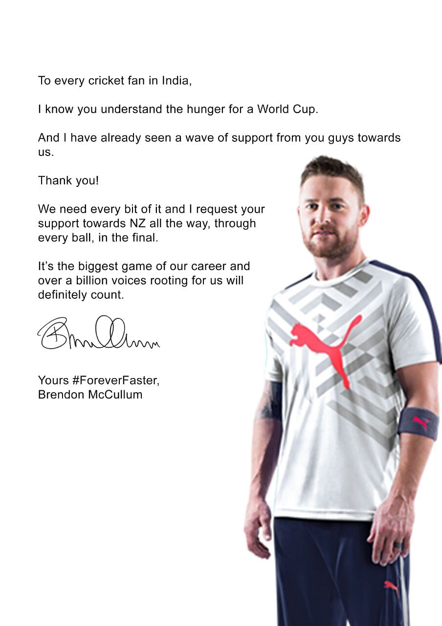 Having qualified for the World Cup final, which will be played at the Melbourne Cricket Ground (MCG) against hosts Australia, McCullum is now hopeful that Indian cricket fans will be there to back his team on Sunday.