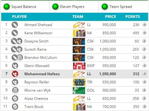 Morne van Wyk is already in. While Aizaz Cheema would struggle to make a big impact on that deck, I couldn’t do much about it as he, too, is in my team. With that in mind, the other players that I would like to have in are Ahmed Shehzad and Mohammad Hafeez. There are couple of factors going against Umar Akmal: his role as a specialist wicket-keeper, leading to formation issues, and the chances of him getting demoted down the order.