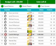 With both Mumbai Indians and Lahore Lions possessing a potent spin duo, the odds are stacked in favour of Williamson staying at the top, which nails one spot for us. With the Lions playing back-to-back fixtures, I pulled in Umar Akmal at the cost of Kushal Perera. The move was actually necessitated after the news of Corey Anderson being dropped came in: a surprise but well-thought-out move from the star-studded think-tank, for a change. Considering the absence of their captain Rohit Sharma and the advantage of having someone like Kieron Pollard down the order, they needed someone to anchor the innings (read: Michael Hussey) more than they needed a big-hitter (read: Corey), a suspect one against off-spinners at that.