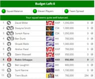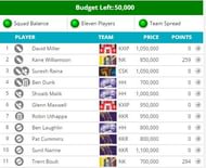 With 9 slots filled by the four teams from the first two fixtures, I rope in Northern Knights’ players Trent Boult and Kane Williamson to fill up the squad, as the team plays the third fixture of the tournament main, against Cape Cobras. Cobras don’t really have a player whom you could bank on within the remaining budget. Hashim Amla takes 900,000 from your budget, while JP Duminy leaves a dent worth 1,050,000.
