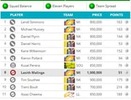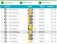 With the new ball threat posed by the Knights pacers and the brittle middle of the defending champions, I expect Kieron Pollard to get some good playing time in the middle; therefore, he walks into my team. Michael Hussey and Lendl Simmons are automatic picks. Lasith Malinga, despite underwhelming performances so far, isn’t someone who you would leave out when you have so many substitutions in the bag.