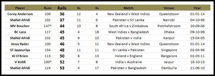 Few thought the record could be broken which was set by the dashing right hander - Shahid Afridi, when he scored his hundred of 37 balls against Sri Lanka in 1996. The Pakistani held the record for the best part of 17 years.
