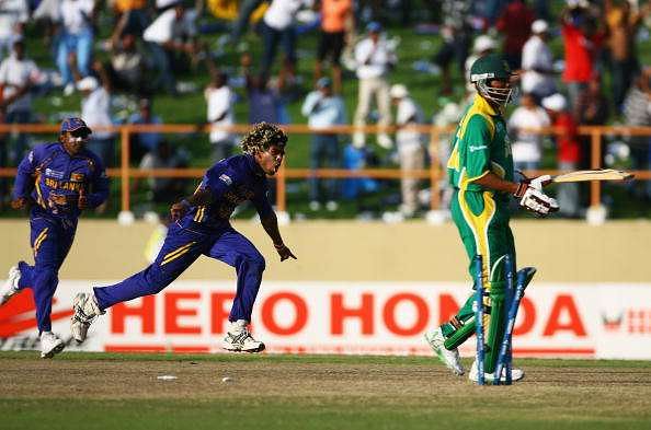 Chasing 209 for victory, South Africa were cruising all along. Suddenly in the 45th over of the game, Malinga changed the course of the match with two wickets in the last two balls of the over. He came back again in the 47th over to pick up two wickets in his first two balls.