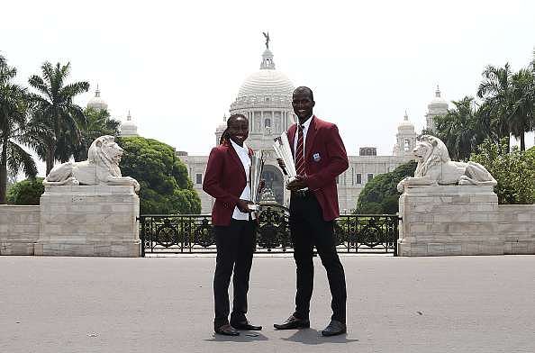 The above picture exhibits Darren Sammy, the captain of the West Indian Men's Team and Stephanie Taylor, the skipper of the Windies Women's Team with their respective trophies in front of the Victoria Memorial in Kolkata.