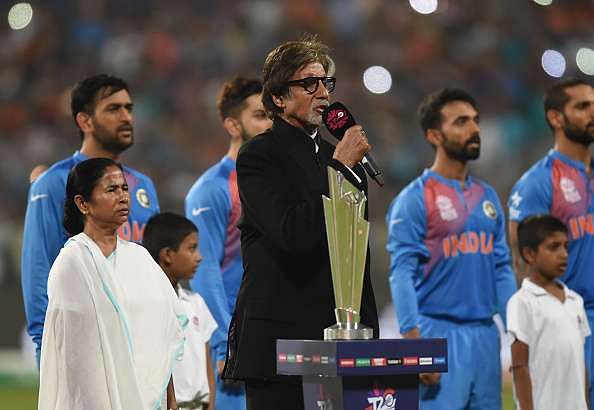 2. Amitabh Bachchan singing the Indian national anthem before the Indo-Pak match at Eden Gardens