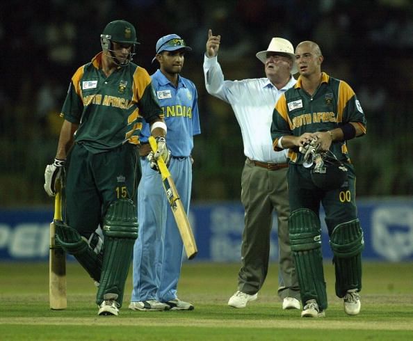 South Africa were still the favourites to win, but it was almost as if the other batsmen took it as a signal to fall apart. Two runs later, Jonty Rhodes was brilliantly caught by Yuvraj off the bowling of Harbhajan Singh.