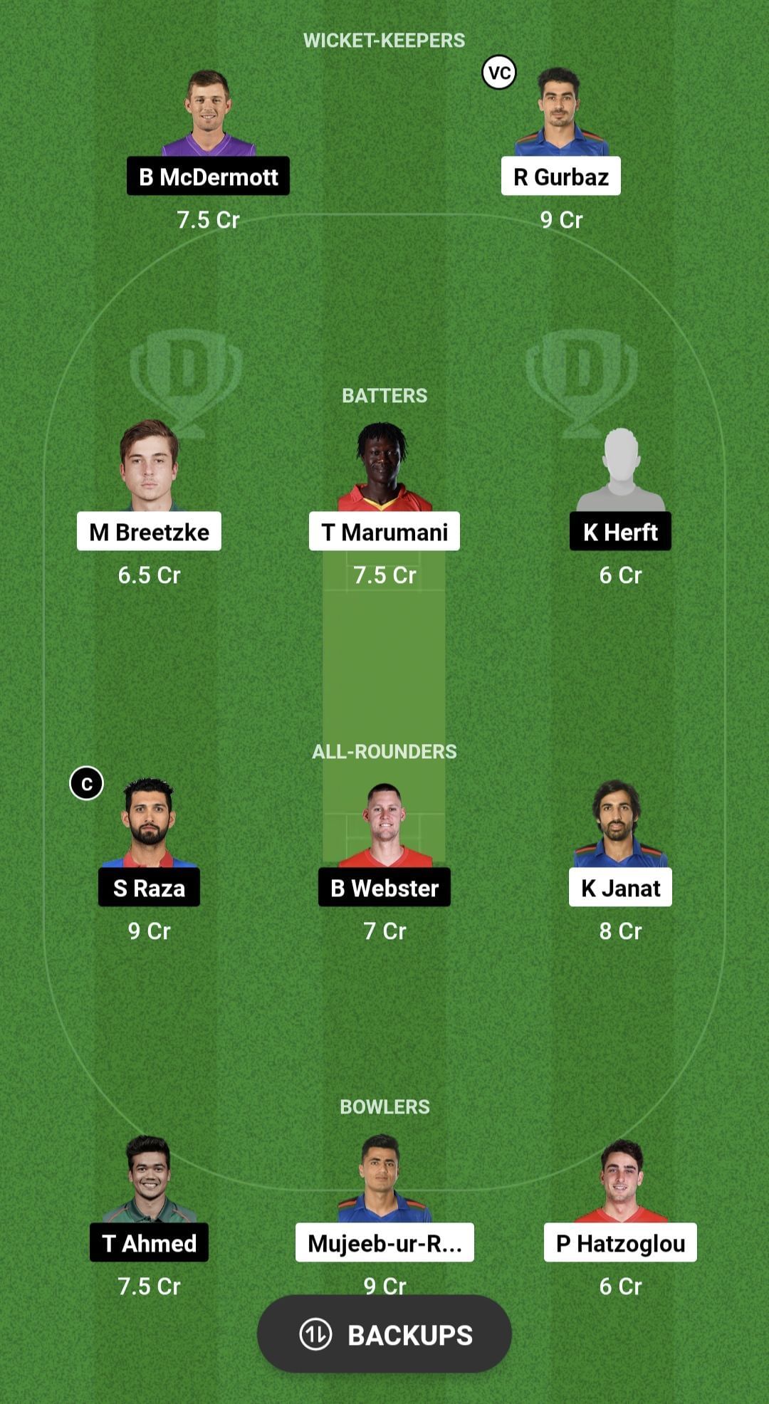 Sikandar is a dependable bet for the armband as he is a terrific player who is expected to be at his best in this game. He has scored 186 runs while scalping six wickets in six matches.