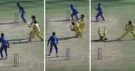 The real action however was taking place near the middle of the pitch where both batsmen collided. Karthik, who had hit the ball was still looking at it and not where the non-striker was. Aparajith, to his credit tried to move away from a collision but it was too late as the pair collided with the India U-19 on the floor as a result of the collision.