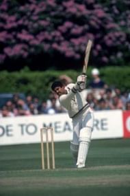David Gower sweeps during his century against Sri Lanka. He was the highest run-getter in the 1983 World Cup.