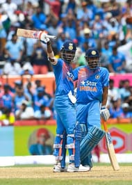 A total of 67 boundaries had been hit in the match, but Bravo did not concede any in the 40th over, bowling to two well-set batsmen. Even when the equation came down to 4 required off 2, Indians had faith in their captain’s six hitting capabilities, victory still seemed assured. Dhoni hit the 5th ball down to long on and scampered for two.